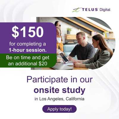 TELUS Digital is looking for friendly, reliable participants for a short on-site research session at our Glendale office.